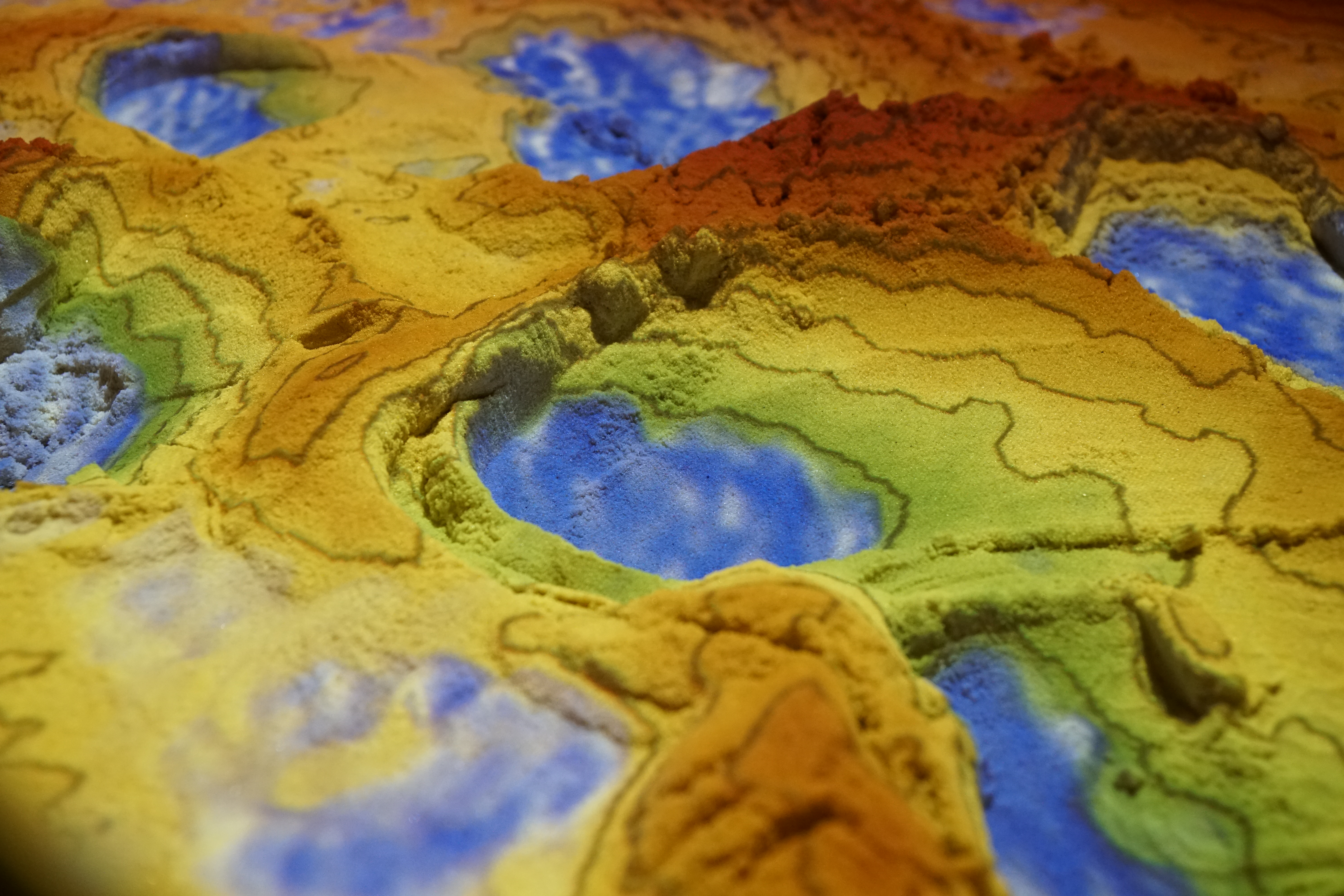 Forming part of the commission, Baseline Drift, a series of basketball sessions developed with coach Joseph Bond, recorded data from movements using various technologies and interventions, including motion tracking, 3D scanning, GoPro, video, audio recording, augmented reality sandbox and other geological equipment and software.